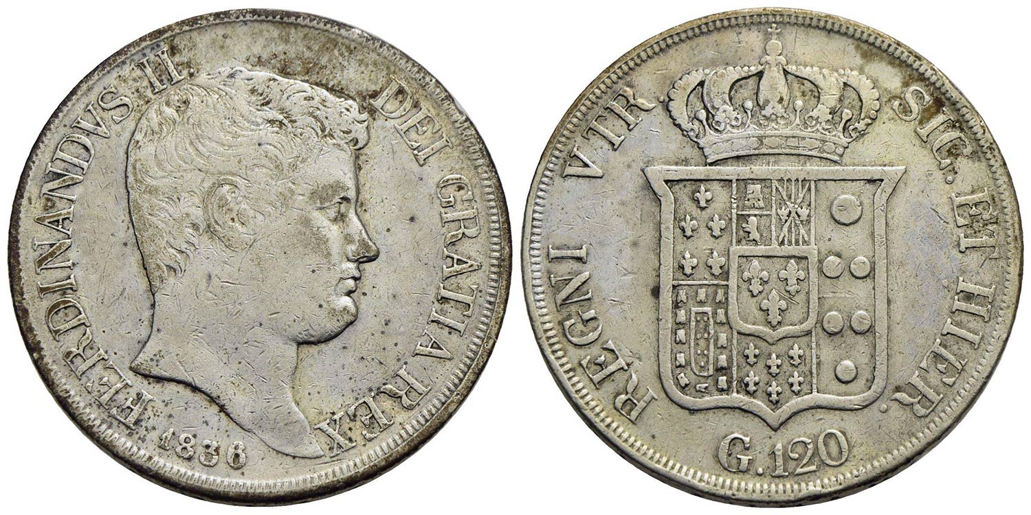 NAPOLI - Ferdinando II di Borbone (1830-1859) - Piastra - 1836 - AG P.R. 61; Mont. 753/754 Con carte