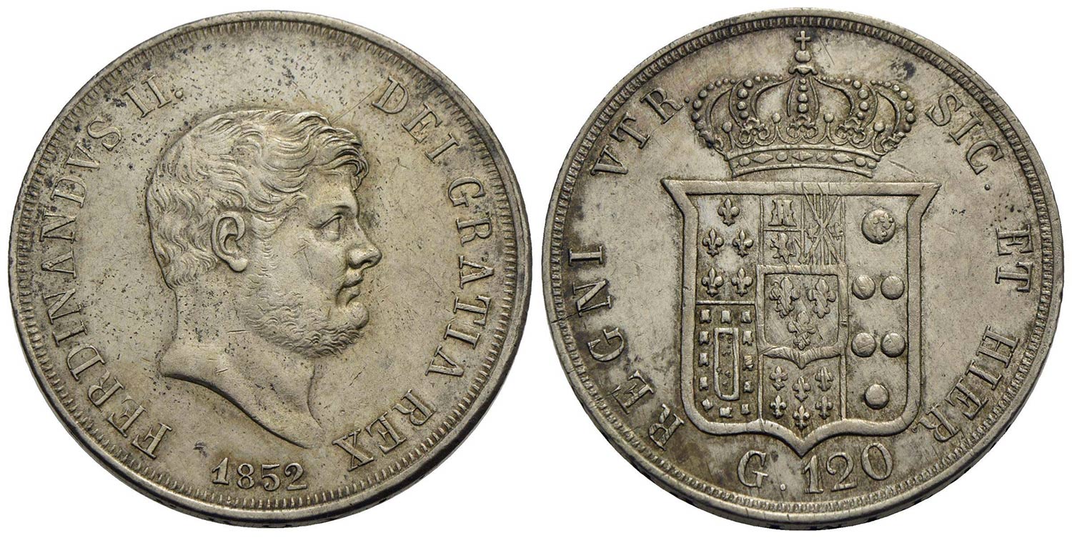 NAPOLI - Ferdinando II di Borbone (1830-1859) - Piastra - 1852 - AG P.R. 81; Mont. 793/795 Con carte