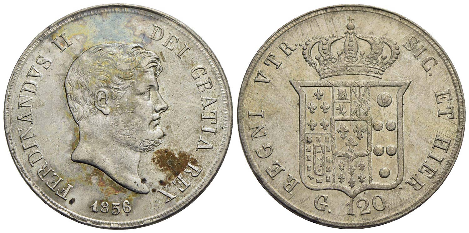 NAPOLI - Ferdinando II di Borbone (1830-1859) - Piastra - 1856 - AG P.R. 85; Mont. 804 e seg. Con ca