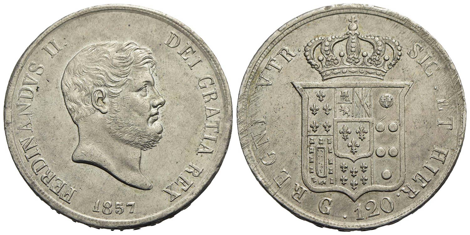 Lotto 1311 | NAPOLI - Ferdinando II di Borbone (1830-1859) - Piastra - 1857 - AG P.R. 86; Mont. 808/816 Segnetti