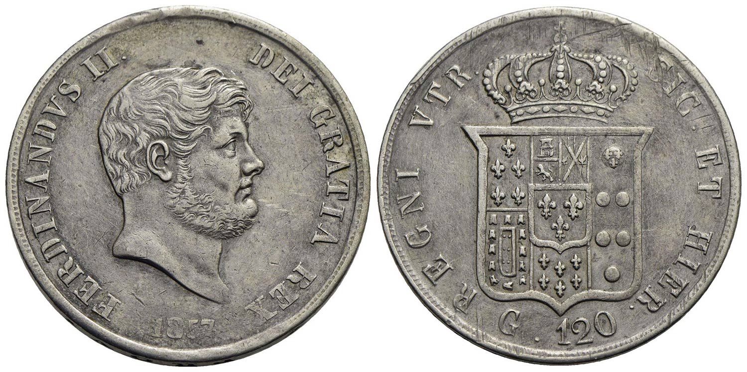Lotto 1312 | NAPOLI - Ferdinando II di Borbone (1830-1859) - Piastra - 1857 - AG P.R. 86; Mont. 808/816<br>BB+