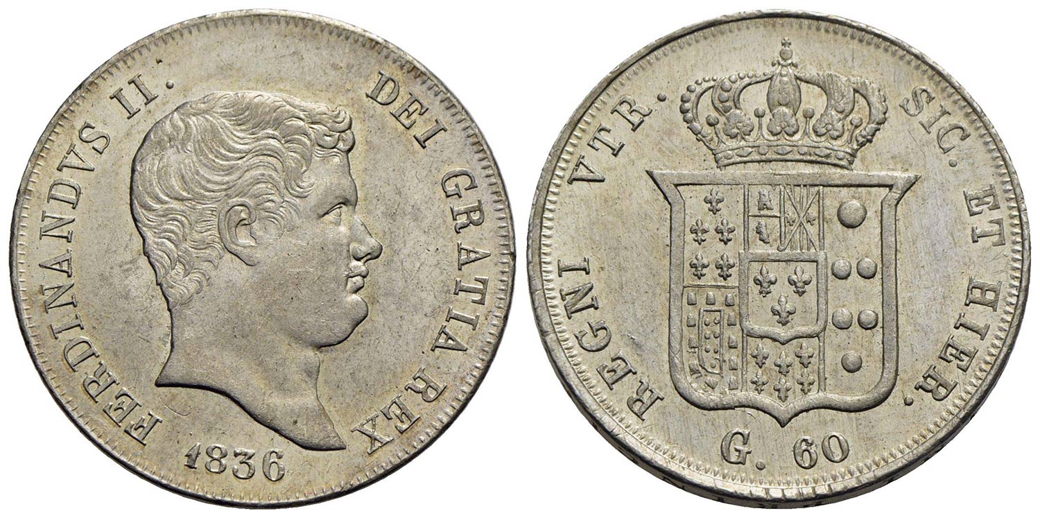 NAPOLI - Ferdinando II di Borbone (1830-1859) - Mezza piastra - 1836 - AG P.R. 94; Mont. 835/836 Fondi lucenti