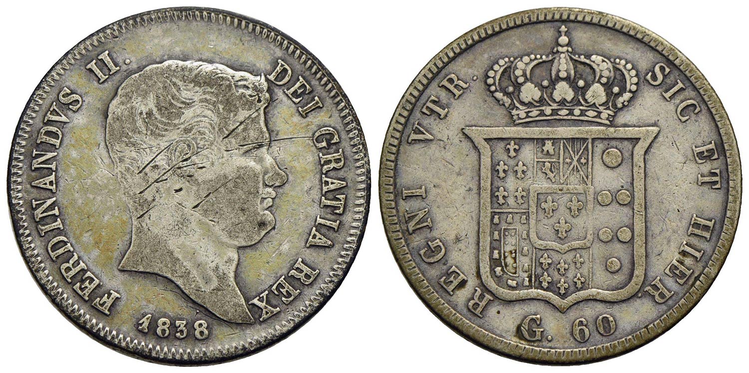 Lotto 1317 | NAPOLI - Ferdinando II di Borbone (1830-1859) - Mezza piastra - 1838 - AG NC P.R. 96; Mont. 838 Con