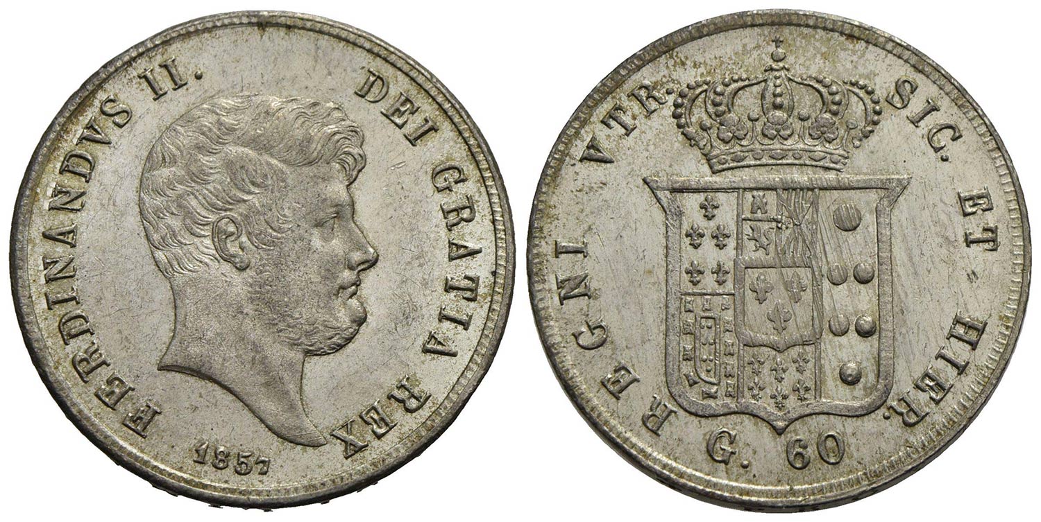 Lotto 1318 | NAPOLI - Ferdinando II di Borbone (1830-1859) - Mezza piastra - 1857 - AG P.R. 111; Mont. 863 Delica