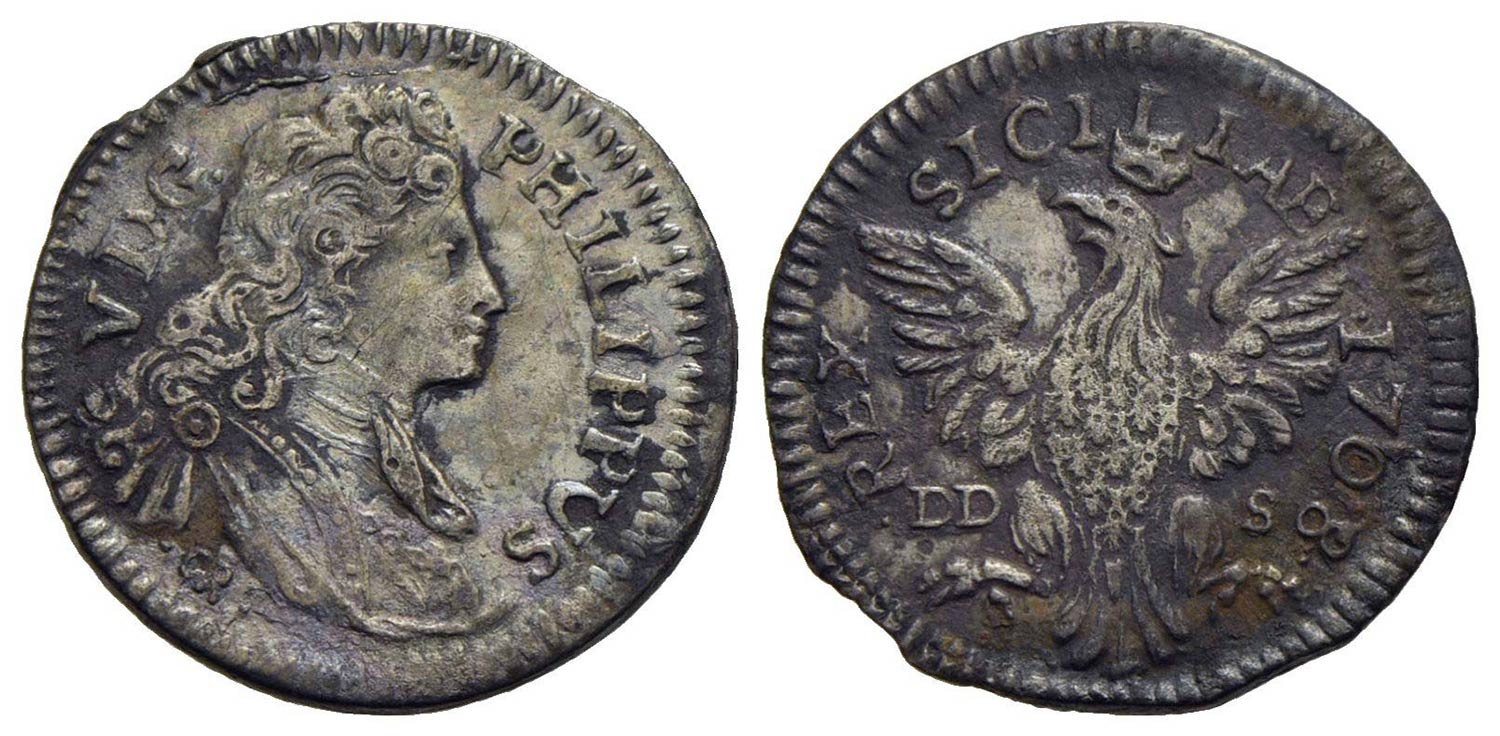 PALERMO - Filippo V di Borbone (1701-1713) - Tarì - 1708 - AG Spahr 15/16; MIR 504/4 Con cartellino