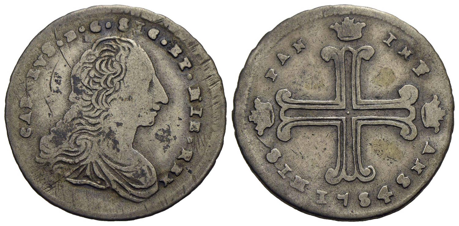 PALERMO - Carlo di Borbone (1734-1759) - 3 Tarì - 1754 - AG R Spahr 16/17; Mont. 175/176 Con cartellino del collezionista anni '50-'60