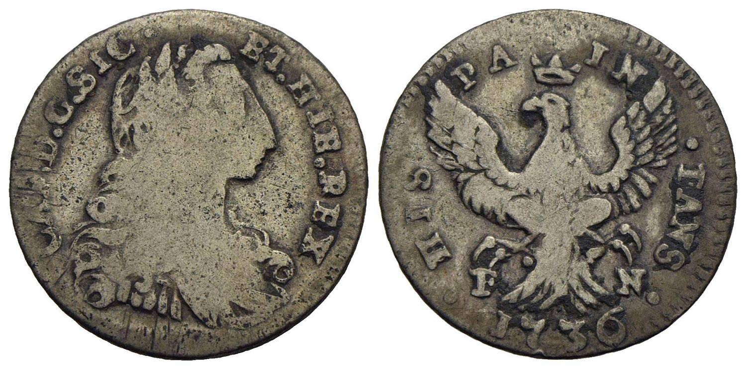 PALERMO - Carlo di Borbone (1734-1759) - 2 Tarì - 1736 - AG Spahr 124/128; Mont. 187/191 Con cartell