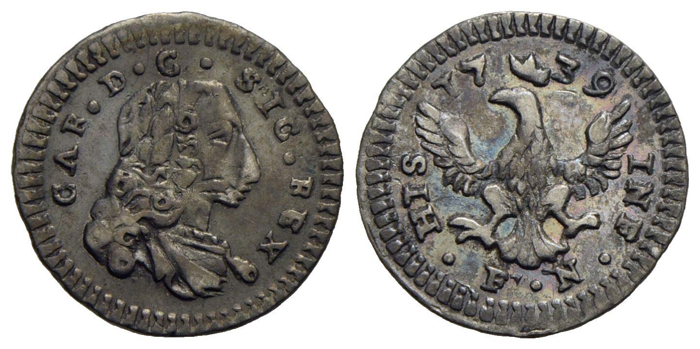 PALERMO - Carlo di Borbone (1734-1759) - Mezzo tarì - 1739 - AG NC Spahr 139; Mont. 209 Con cartelli