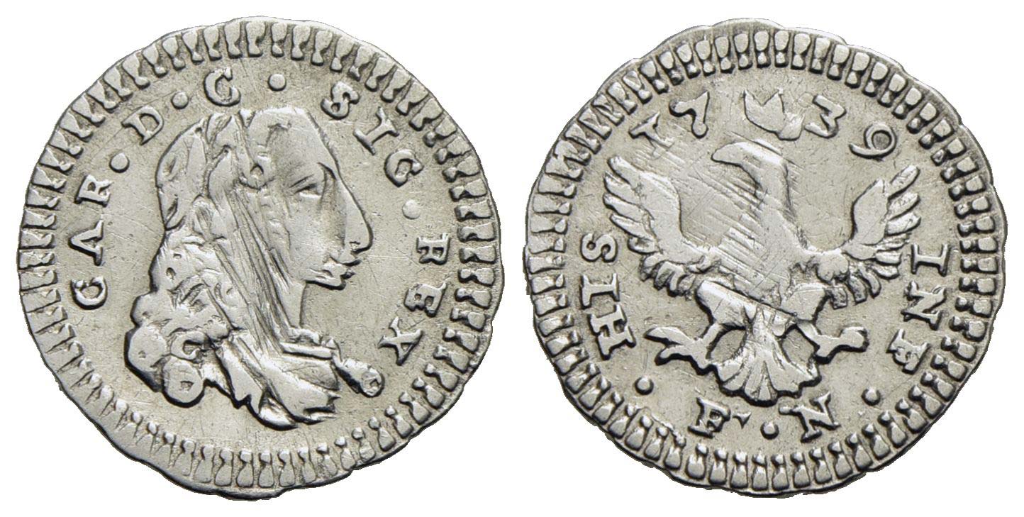 PALERMO - Carlo di Borbone (1734-1759) - Mezzo tarì - 1739 - AG NC Spahr 139; Mont. 209<br>bel BB