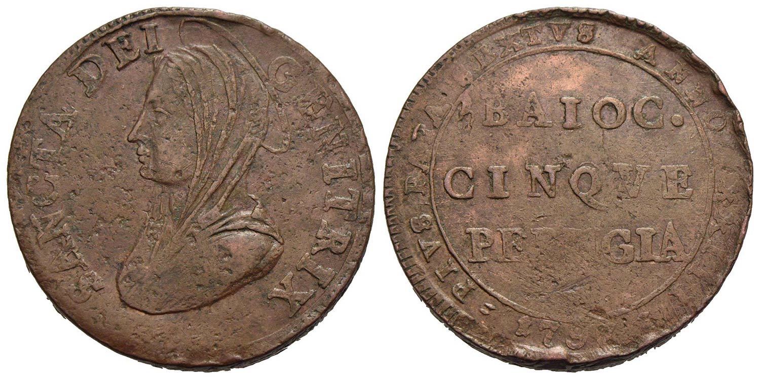 PERUGIA - Pio VI (1775-1799) - Madonnina - 1797 - CU R CNI 36; Munt. 389<br>bel BB