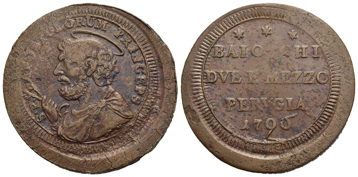 PERUGIA - Pio VI (1775-1799) - Sampietrino - 1796 - CU CNI 6; Munt. 392 T.M. al D/