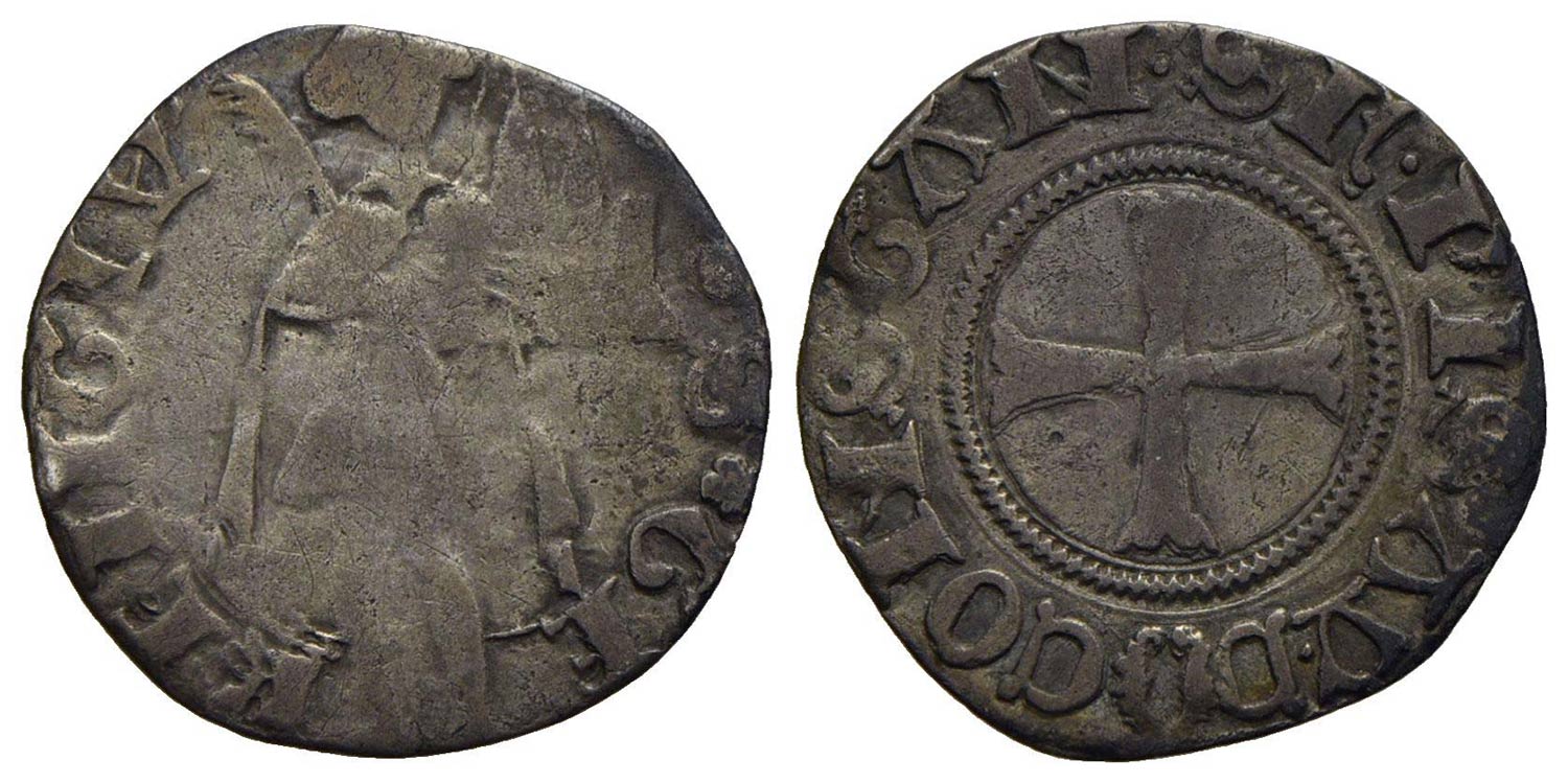 PESARO - Costanzo I Sforza (1473-1483) - Terzo di grosso - Croce patente - R/ Il Santo stante - (AG g. 1,04) RR CNI 14/25