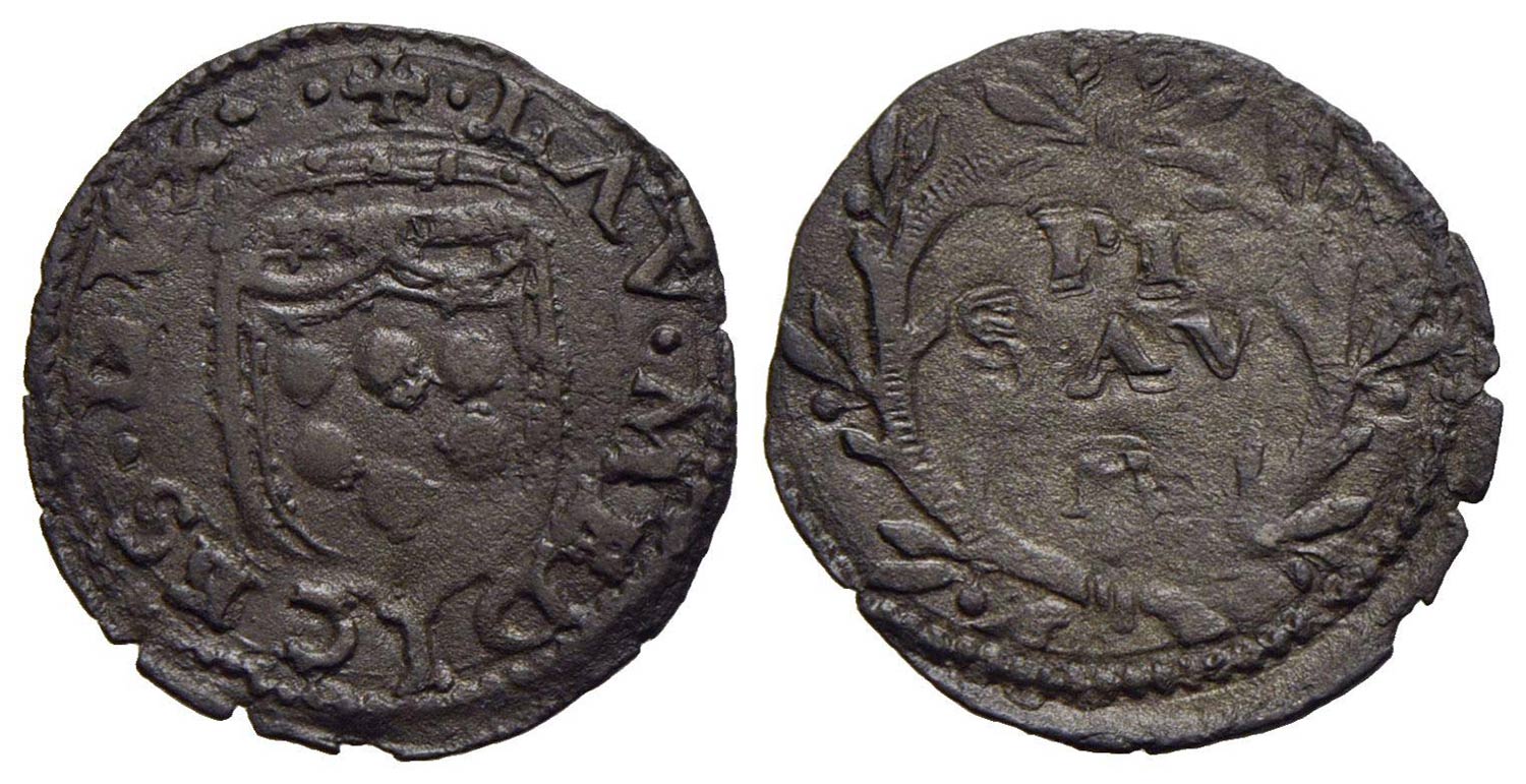 PESARO - Lorenzo de' Medici (1516-1519) - Quattrino - Stemma mediceo coronato - R/ Scritta entro corona - (MI g. 0,64) CNI 1 Con cartellino del collezionista anni '50-'60