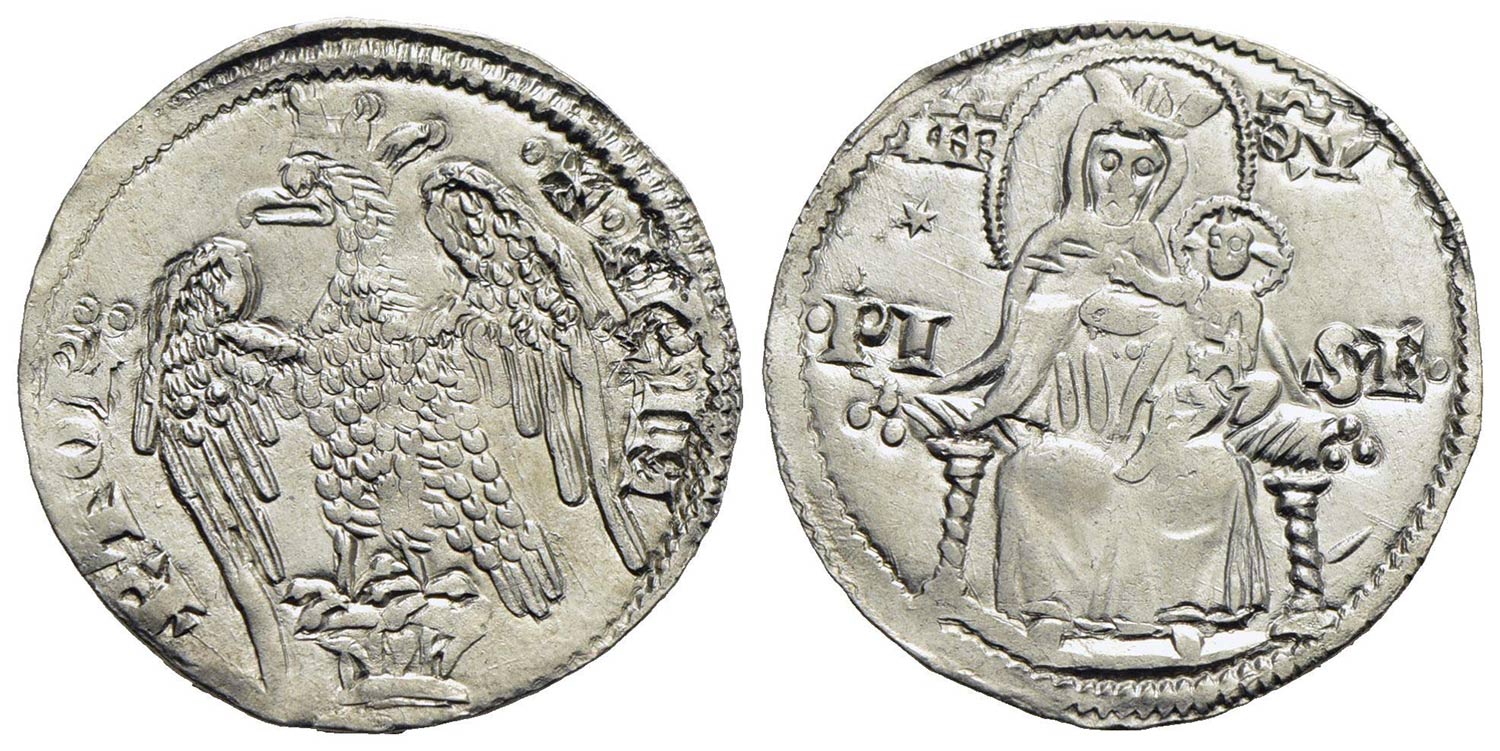 PISA - Repubblica (a nome di Federico I, 1150-1312) - Grosso da 2 soldi - (1269-1270) - Aquila coronata a s. - R/ La Beata Vergine coronata; nel campo a s. stella - (AG g. 3,32) R CNI 25/37; MIR 397/398