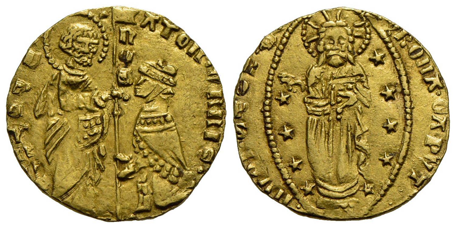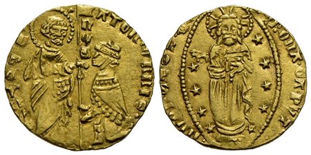 ROMA - Senato Romano (1134-1439) - Ducato - San Pietro stante a s. consegna il vessillo al senatore inginocchiato - R/ Figura di Gesù entro ellisse - AU CNI 509; Munt. 102