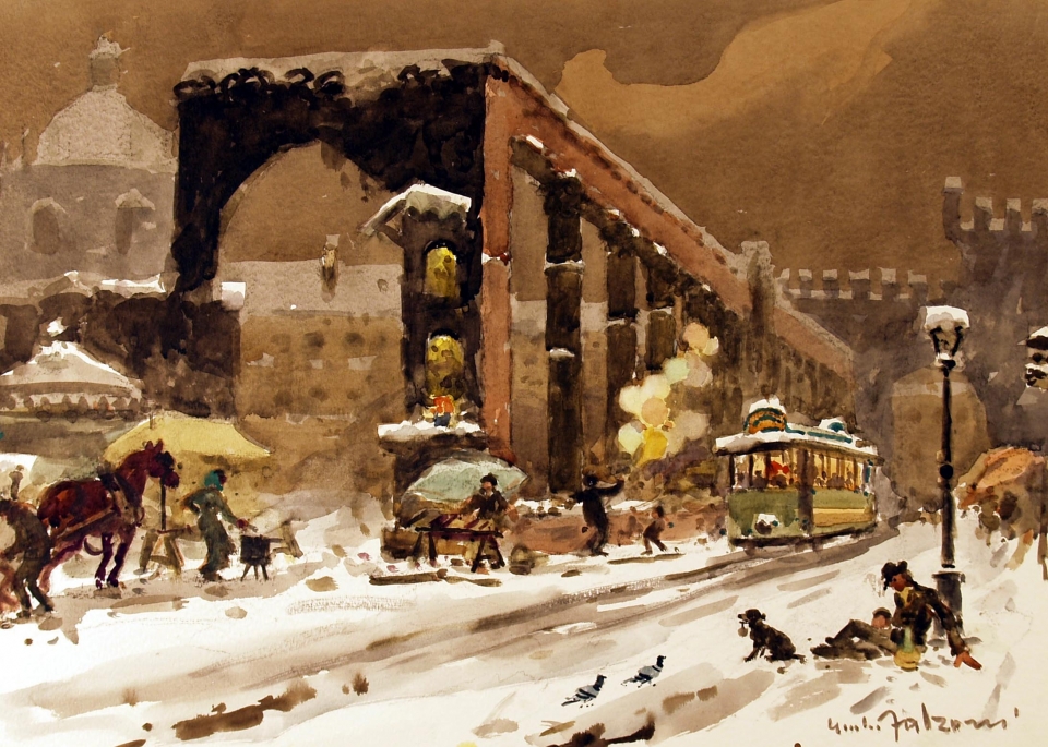 FALZONI GIULIO (Marmirolo 1900 - Milano 1978) "Vecchia Milano, le colonne di...