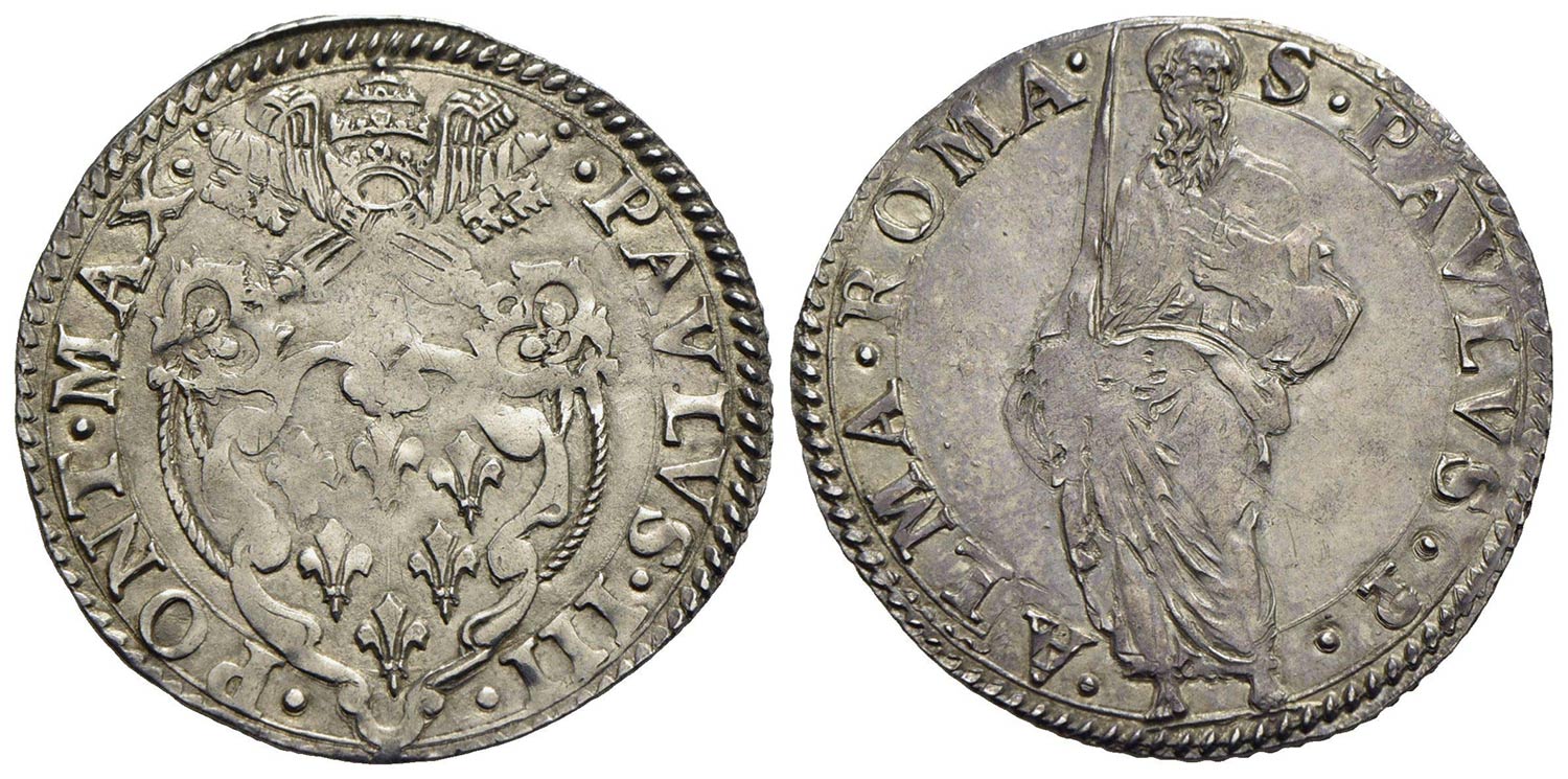 ROMA - Paolo III (1534-1549) - Paolo - Stemma a targa - R/ San Paolo con libro chiuso - (AG g. 3,31)