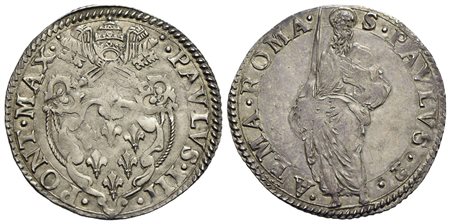 ROMA - Paolo III (1534-1549) - Paolo - Stemma a targa - R/ San Paolo con libro chiuso - (AG g. 3,31) R CNI 102; Munt. 56