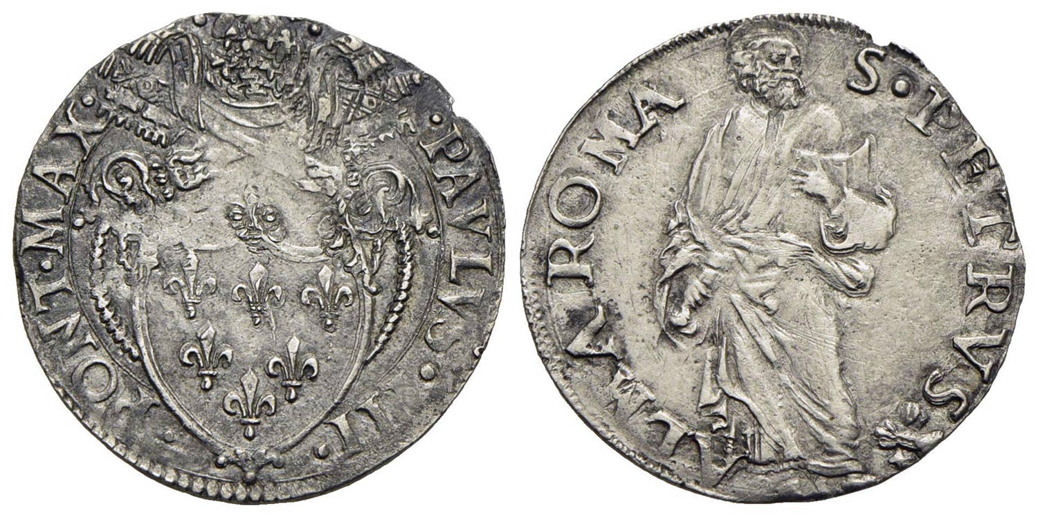 ROMA - Paolo III (1534-1549) - Grosso - Stemma a targa - R/ Figura del Santo in piedi che tiene il l