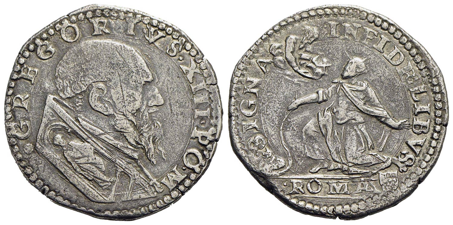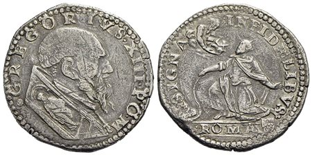 ROMA - Gregorio XIII (1572-1585) - Testone - Busto a d. - R/ Mosè inginocchiato a s. - (AG g. 9,05) RR CNI 316; Munt. 68