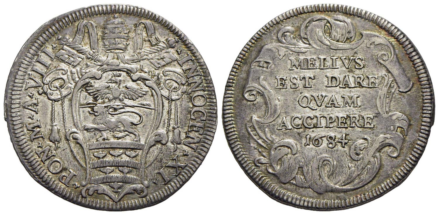 ROMA - Innocenzo XI (1676-1689) - Testone - 1684 A. VIII - Stemma sormontato da tiara e chiavi decus