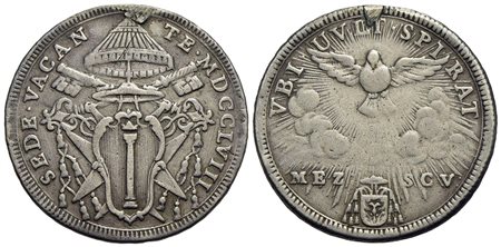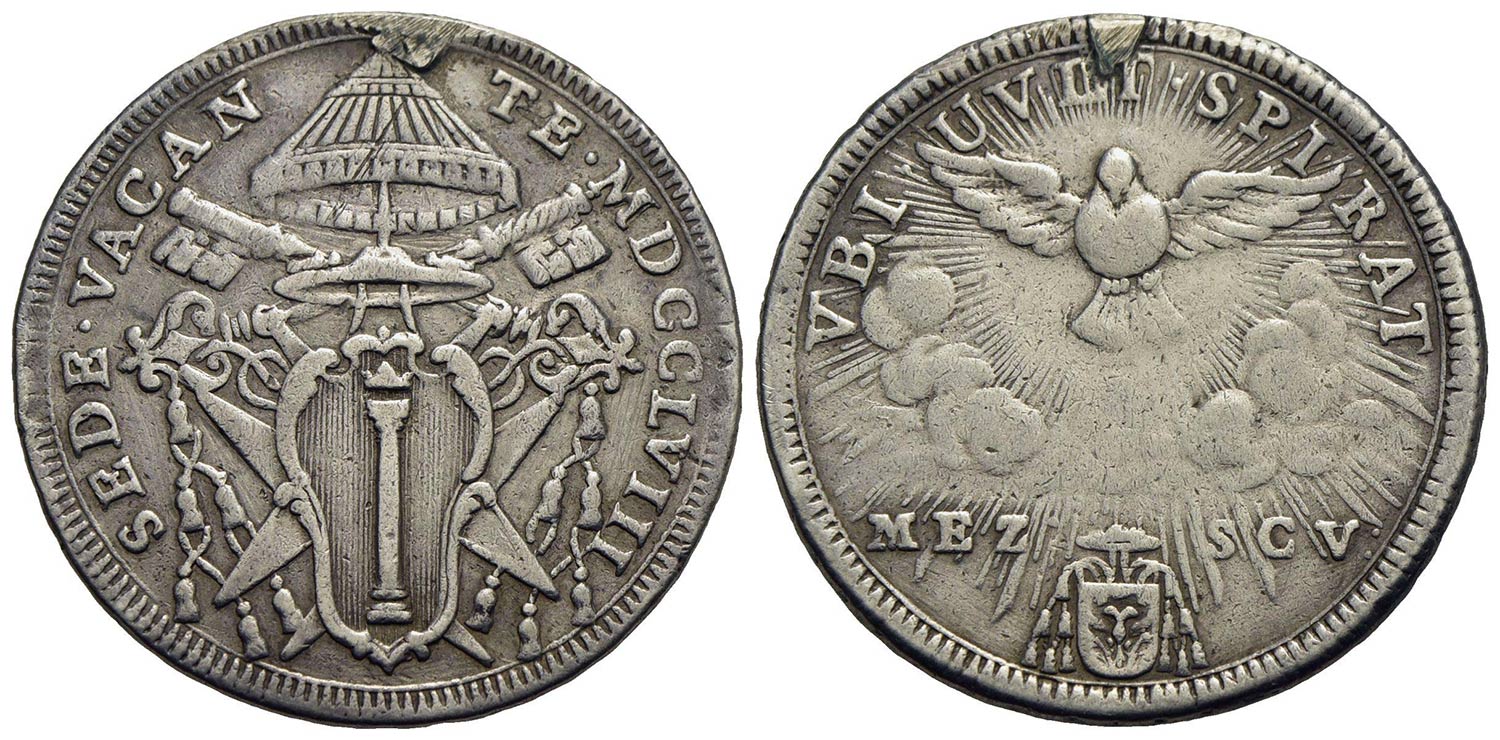 ROMA - Sede Vacante (1758) - Mezzo scudo - 1758 - Stemma oblungo con fogliami - R/ Colomba radiante - AG R CNI 5; Munt. 3 Appiccagnolo rimosso