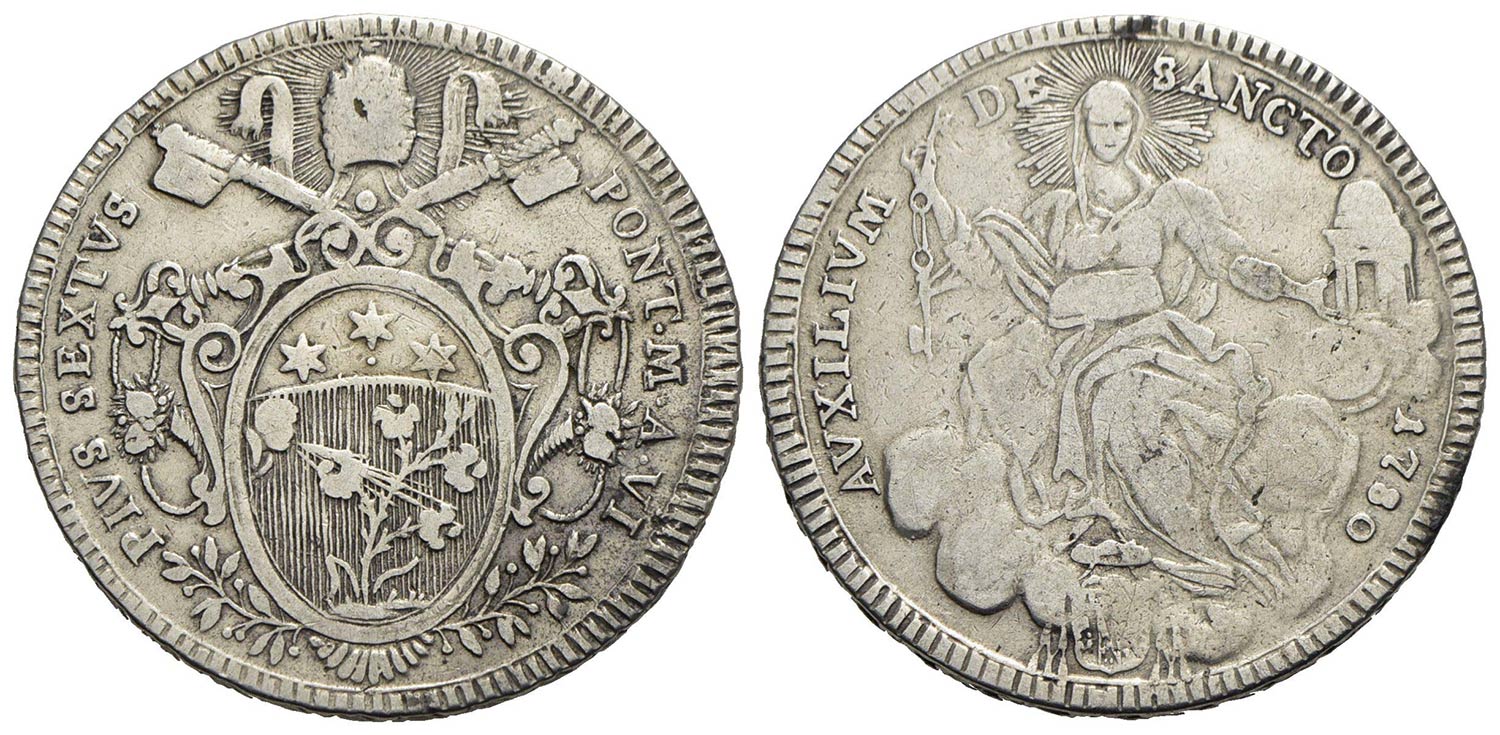 ROMA - Pio VI (1775-1799) - Scudo romano - 1780 A. VI - AG CNI 60; Munt. 17 Tiara radiante<br>bel BB