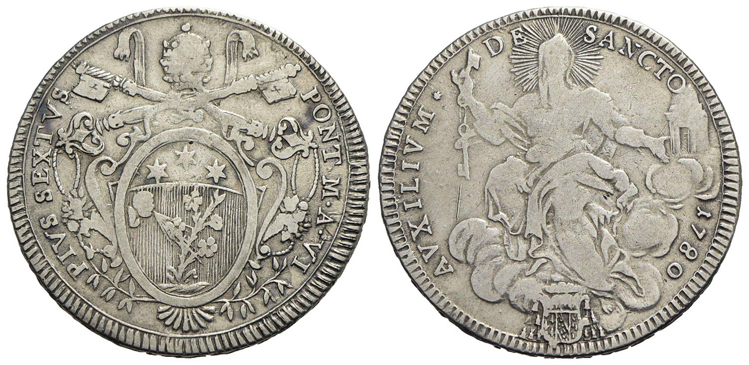 ROMA - Pio VI (1775-1799) - Scudo romano - 1780 A. VI - AG R CNI 64/65; Munt. 17 var. I Tiara non radiante