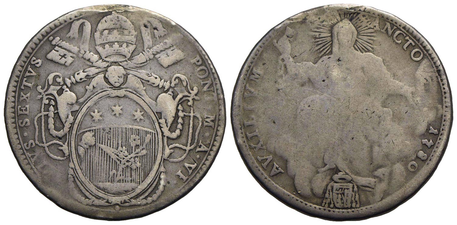 ROMA - Pio VI (1775-1799) - Mezzo scudo romano - 1780 A. VI - AG CNI 70; Munt. 26 Appiccagnolo rimosso