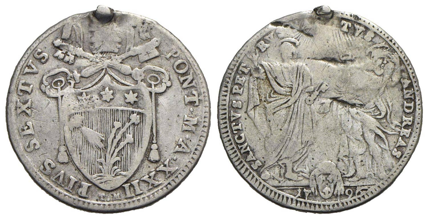ROMA - Pio VI (1775-1799) - Testone - 1796 A. XXII - AG CNI 321; Munt. 33 Montatura asportata<br>qBB