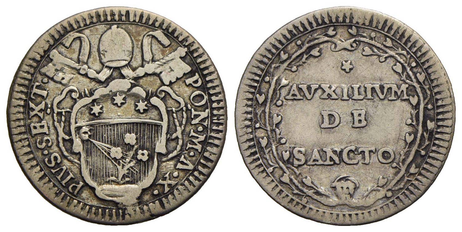 Lotto 1497 | ROMA - Pio VI (1775-1799) - Grosso - A. X - AG R CNI 146; Munt. 55 Testina in basso al R/<br>BB