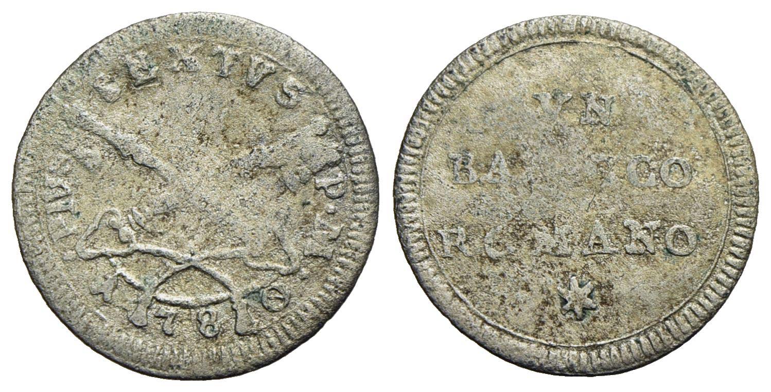 ROMA - Pio VI (1775-1799) - Baiocco - 1780 - MI R CNI 59; Munt. 93<br>MB+
