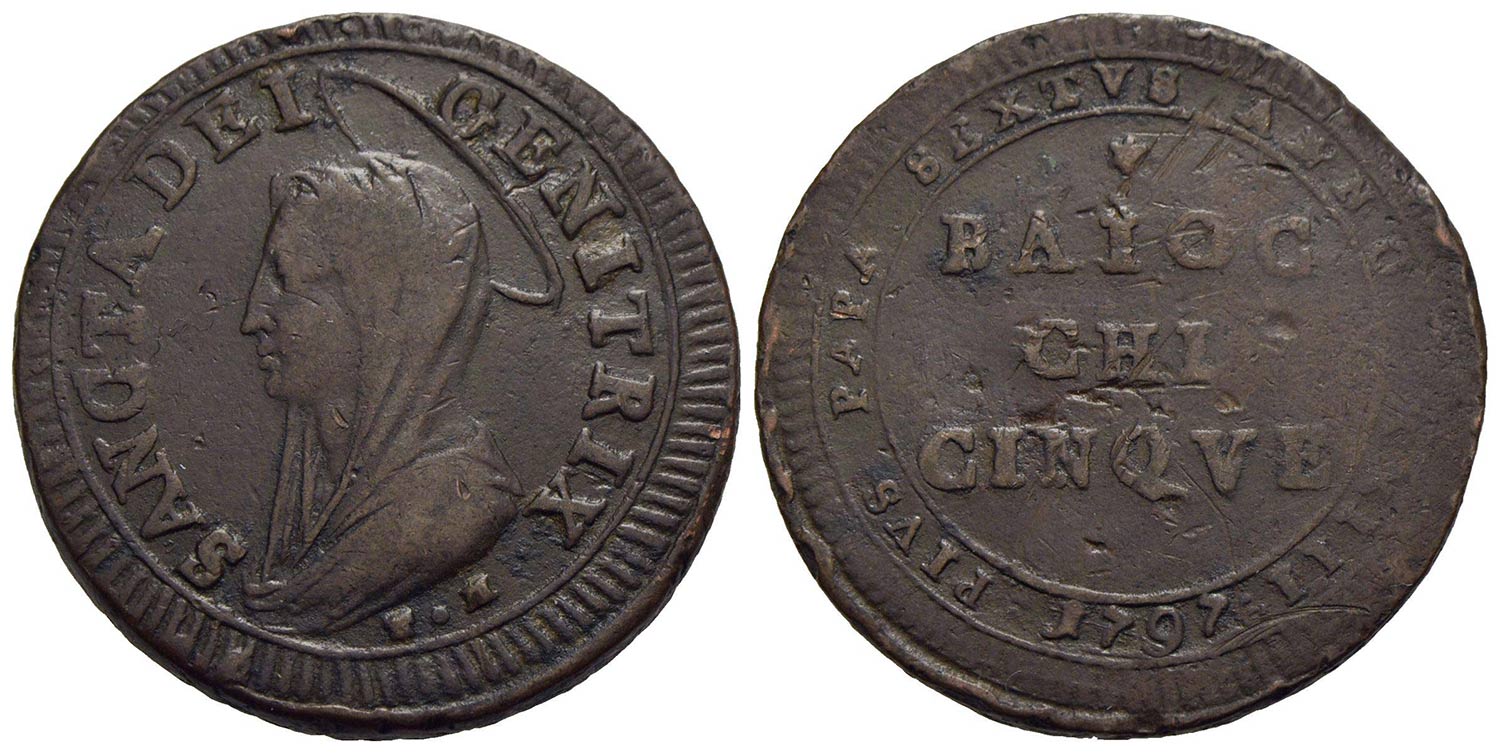ROMA - Pio VI (1775-1799) - Madonnina - 1797 A. XXIII - CU CNI 363; Munt. 94