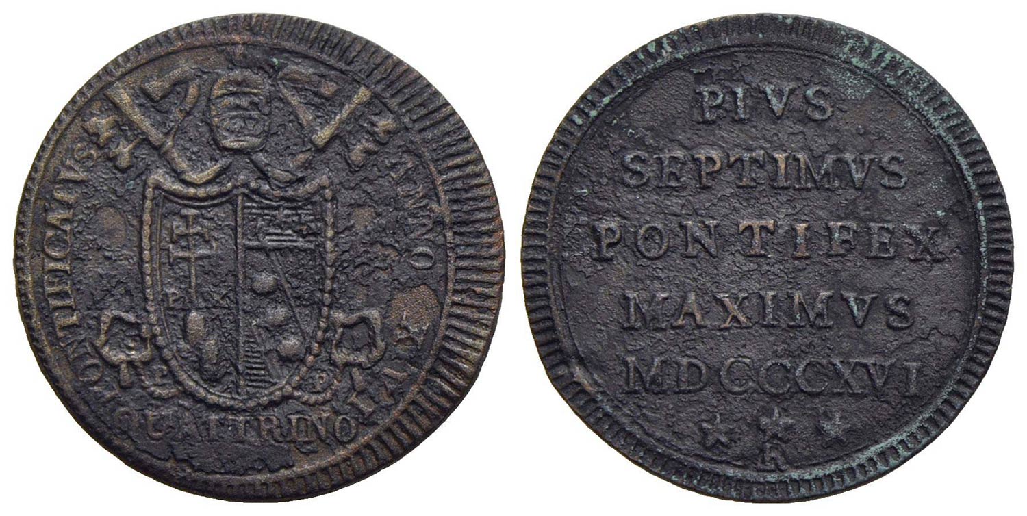 ROMA - Pio VII (1800-1823) - Quattrino - 1816 A. XVI - CU Pag. 118/b; Mont. 136/138<br>bel BB