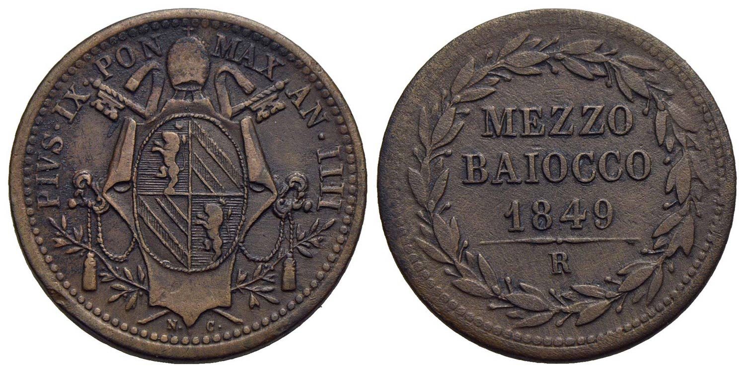 ROMA - Pio IX (1846-1866) - Mezzo baiocco - 1849 A. IIII - CU Pag. 509/509b; Mont. 314/316<br>BB-SPL