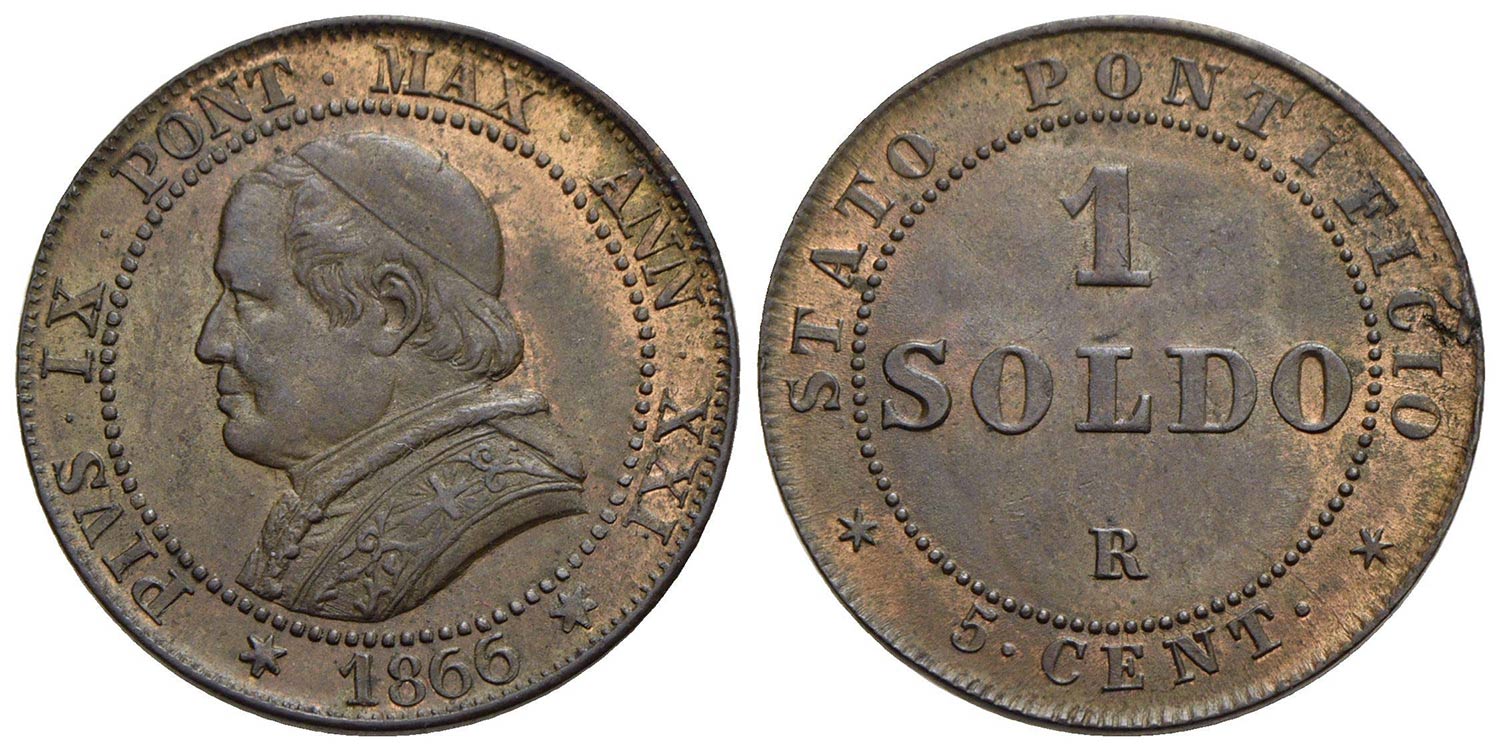 ROMA - Pio IX (1866-1878) - Soldo - 1866 A. XXI - CU Pag. 601; Mont. 409 Busto piccolo