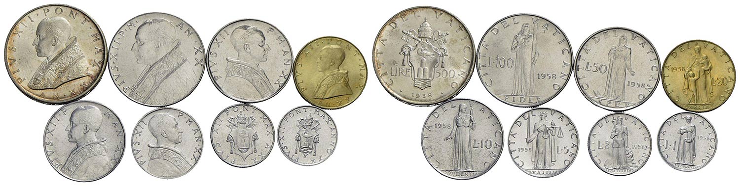 ROMA - Pio XII (1939-1958) - Serie - 1958 - 8 monete - Mont. 673 Ag-Ac-Ba-It