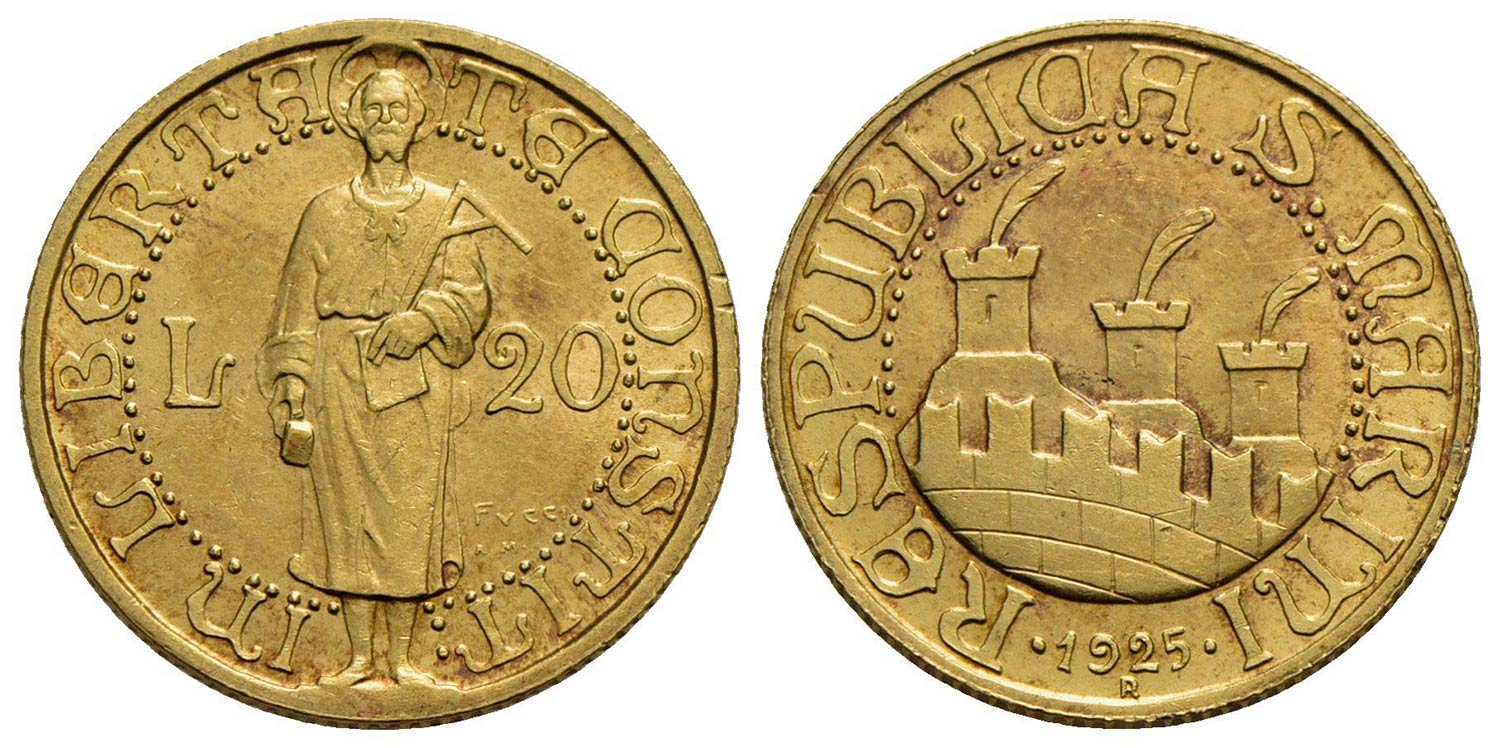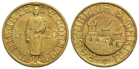 SAN MARINO - Vecchia monetazione - 20 Lire - 1925 - AU RR Pag. 341; Mont. 14