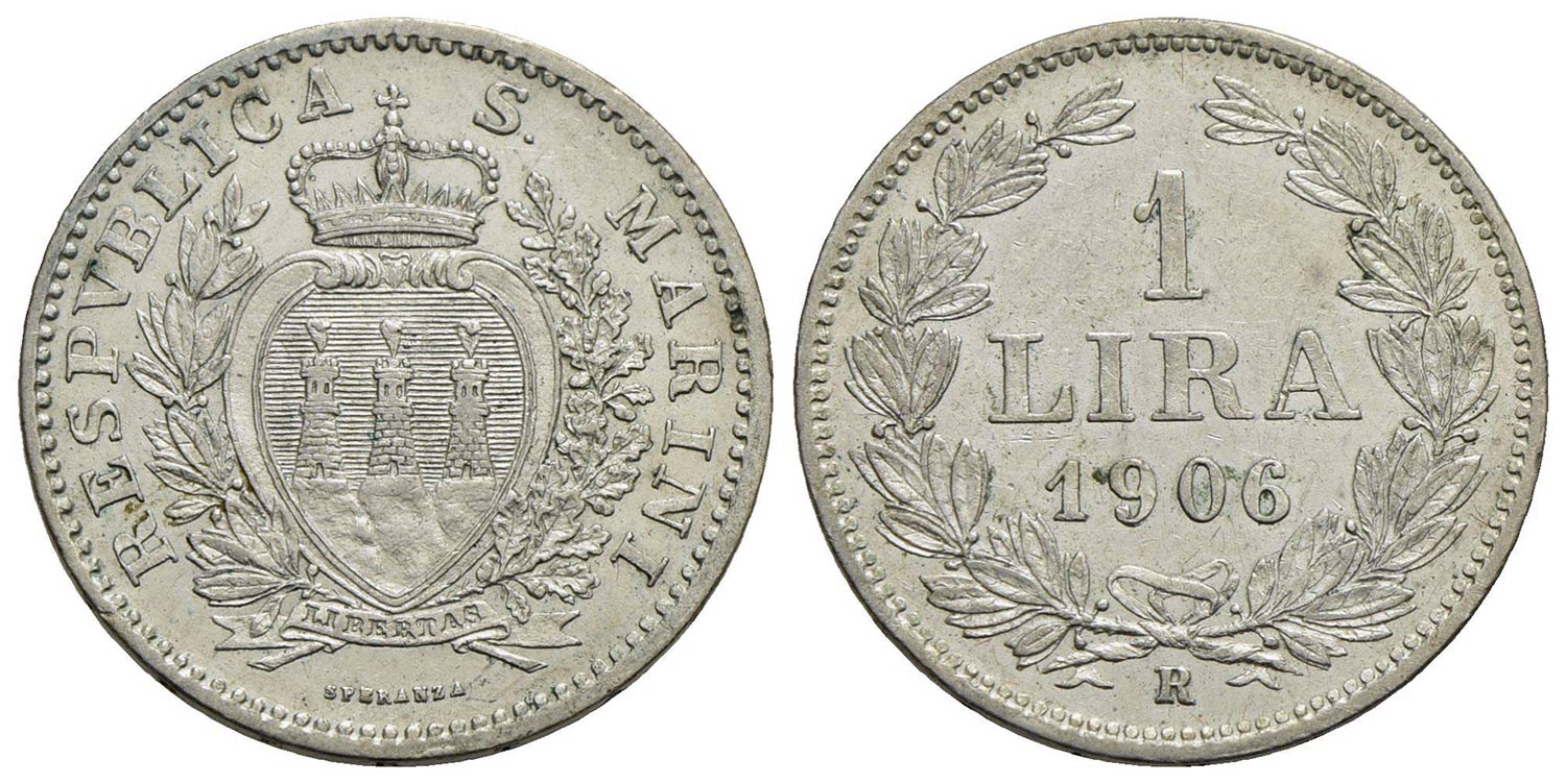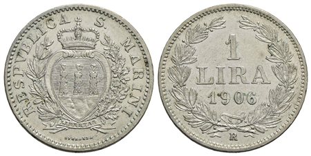 SAN MARINO - Vecchia monetazione - Lira - 1906 - AG Pag. 368; Mont. 5