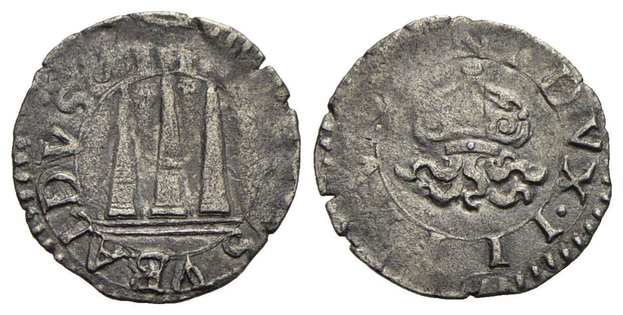 URBINO - Guidobaldo II (1538-1574) - Soldo - Tre piramidi - R/ Vaso da cui escono fiamme - (AG g. 0,39) R CNI 164/174