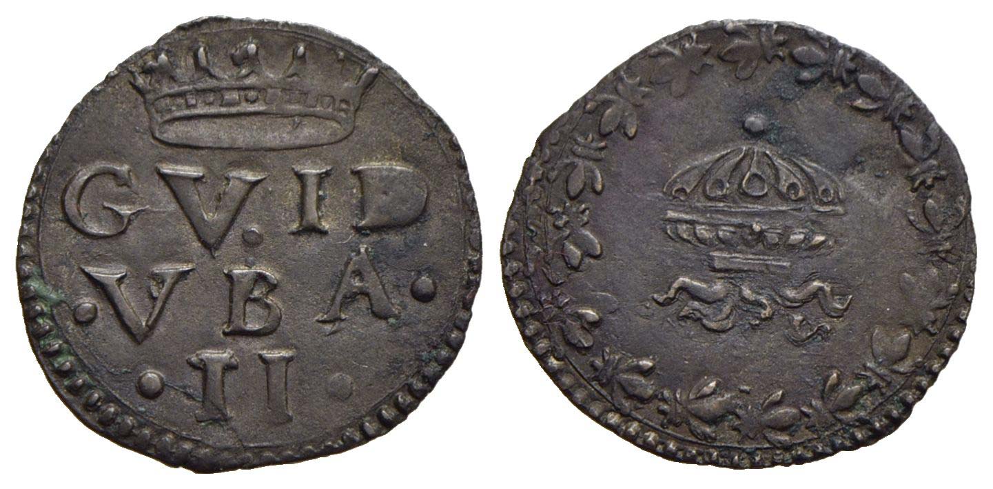 URBINO - Guidobaldo II (1538-1574) - Quattrino - Scritta - R/ Vaso capovolto con fiamme - (CU g. 0,7) CNI 184 e seg.; Cav. 133