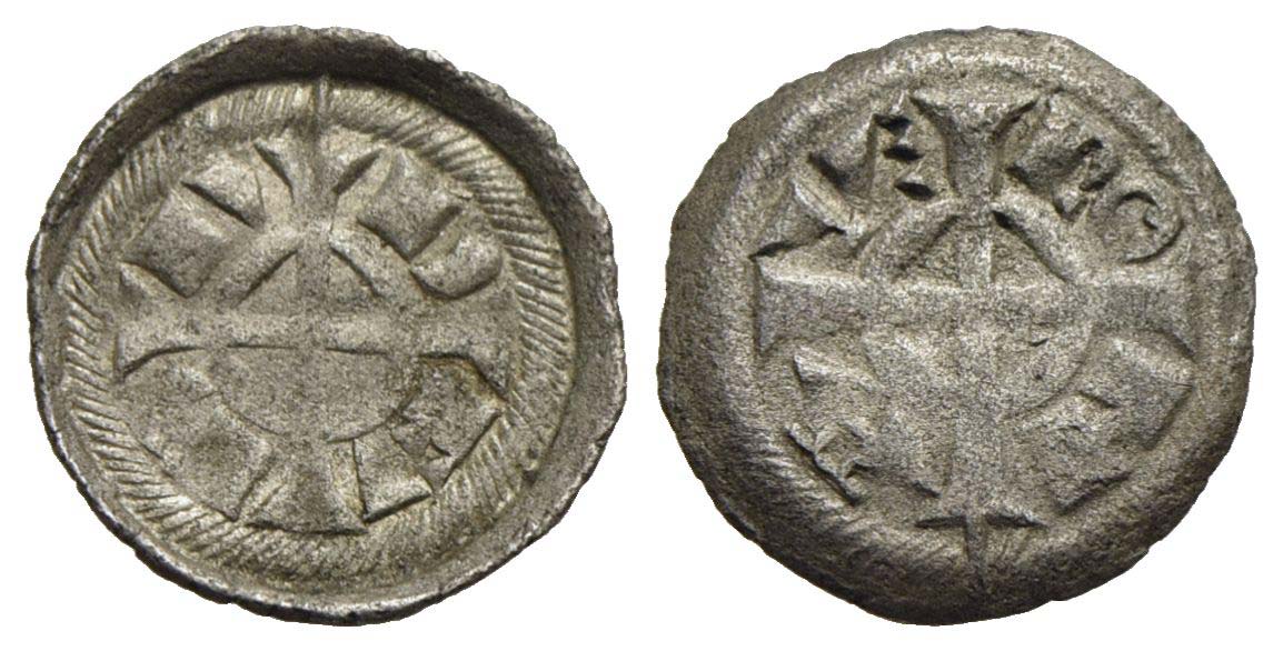 VERONA - Federico II di Svevia (1218-1250) - Denaro piccolo scodellato - Croce intersecante - R/ Croce intersecante - (MI g. 0,33) NC Biaggi 2969 Con bustina manoscritta del collezionista anni '50