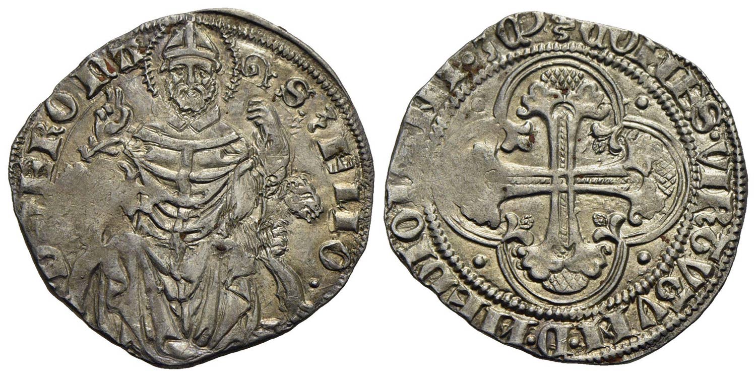 VERONA - Gian Galeazzo Visconti (1387-1402) - Grosso - Croce fiorata - R/ Il Santo seduto - (MI g. 2,4) RR Biaggi 2982