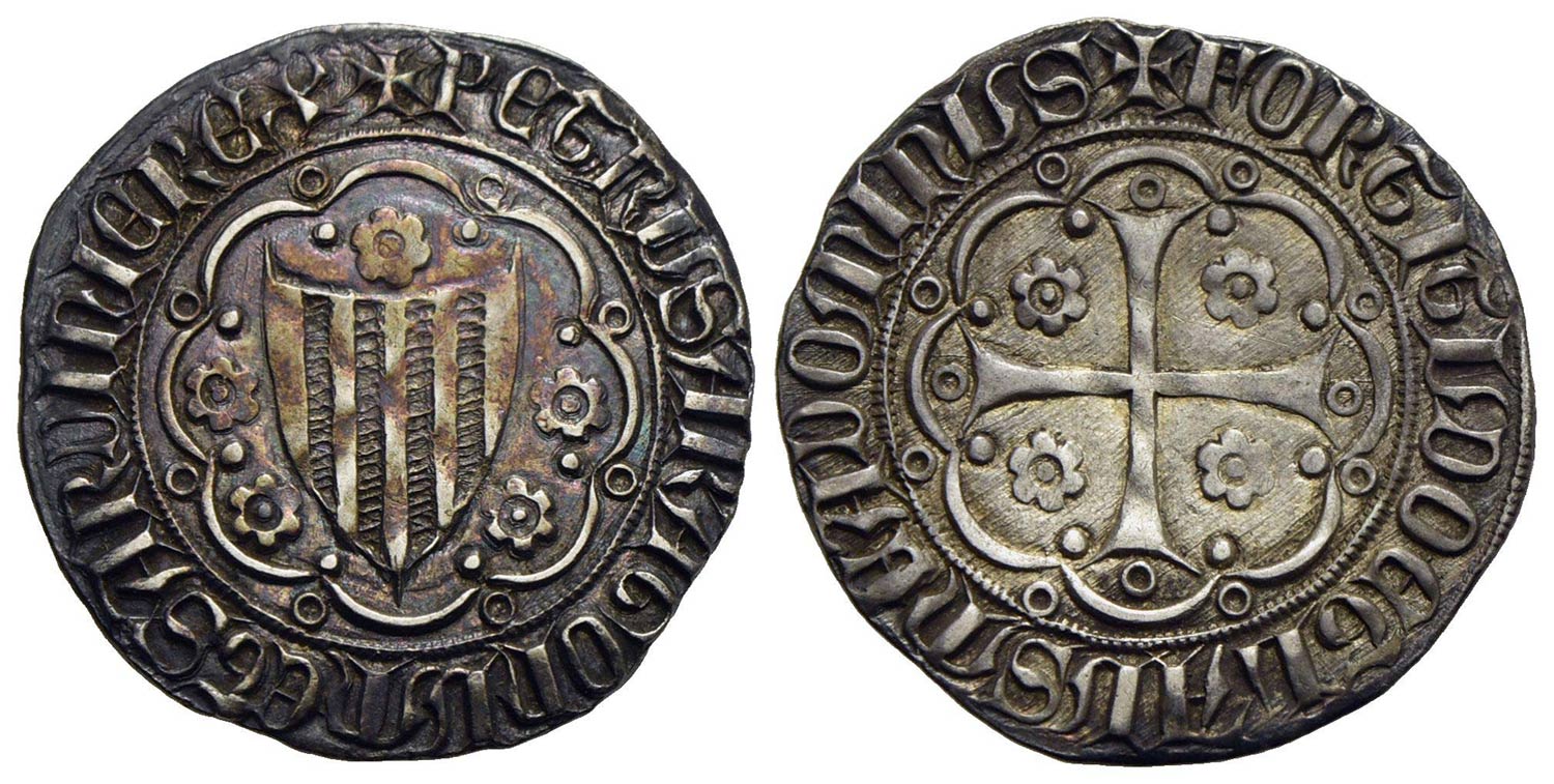 VILLA DI CHIESA - Pietro IV d'Aragona (1336-1387) - Alfonsino - Stemma a cuore - R/ Croce e quattro
