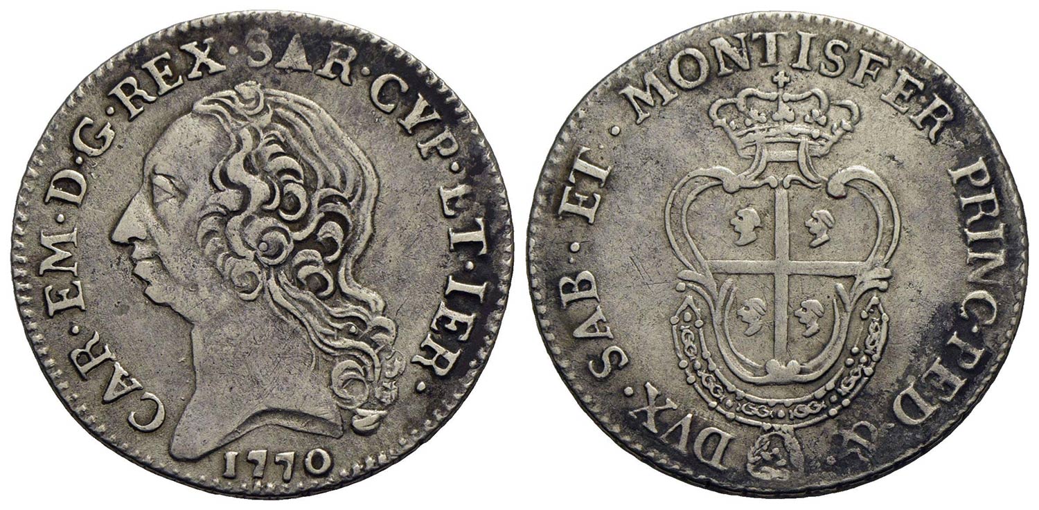 Carlo Emanuele III (1730-1773) - Quarto di scudo sardo - 1770 - AG Mont. 259<br>BB-SPL