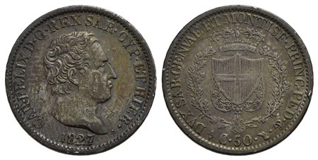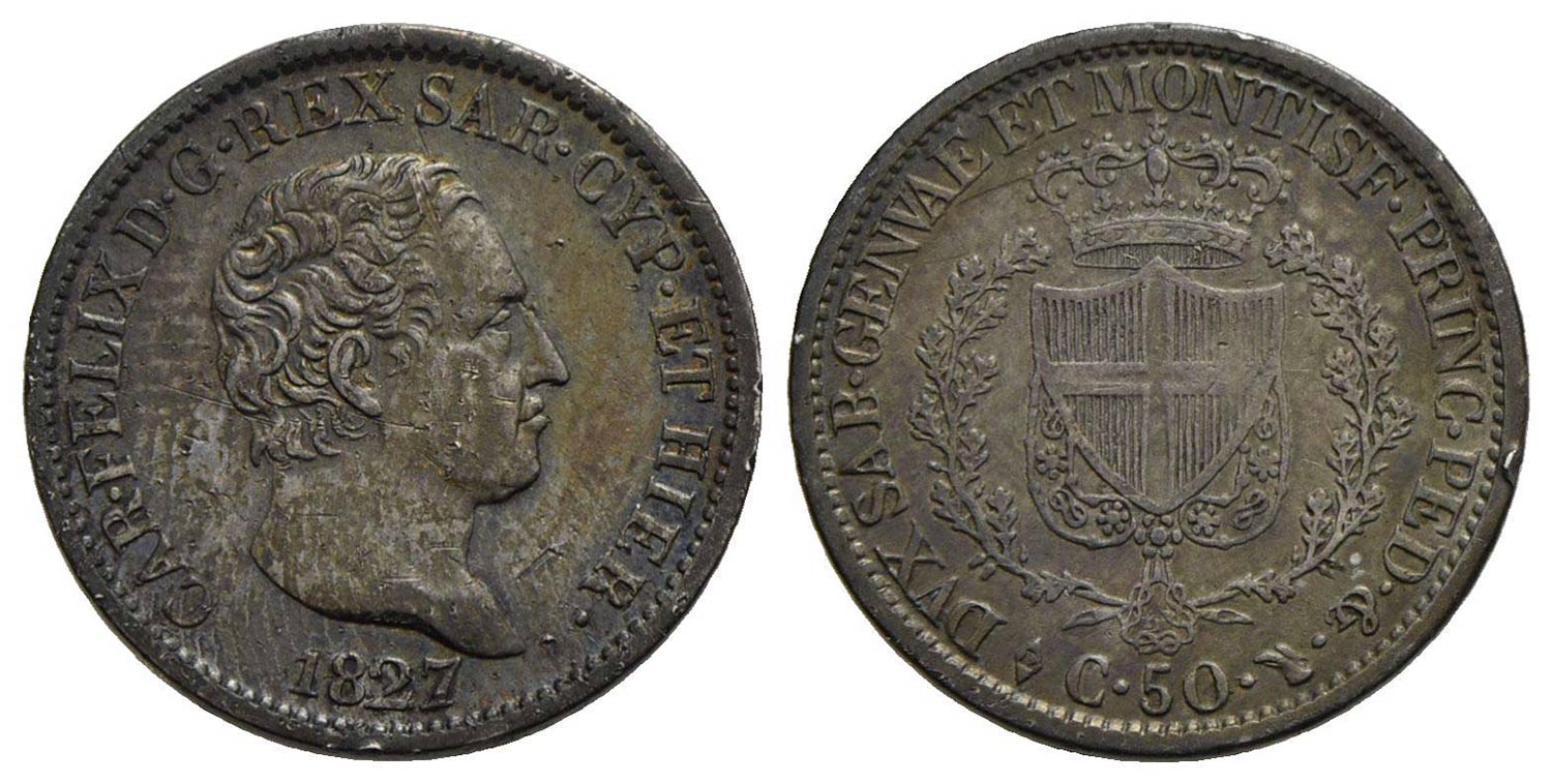 Carlo Felice (1821-1831) - 50 Centesimi - 1827 T - AG Pag. 115; Mont. 113<br>qSPL