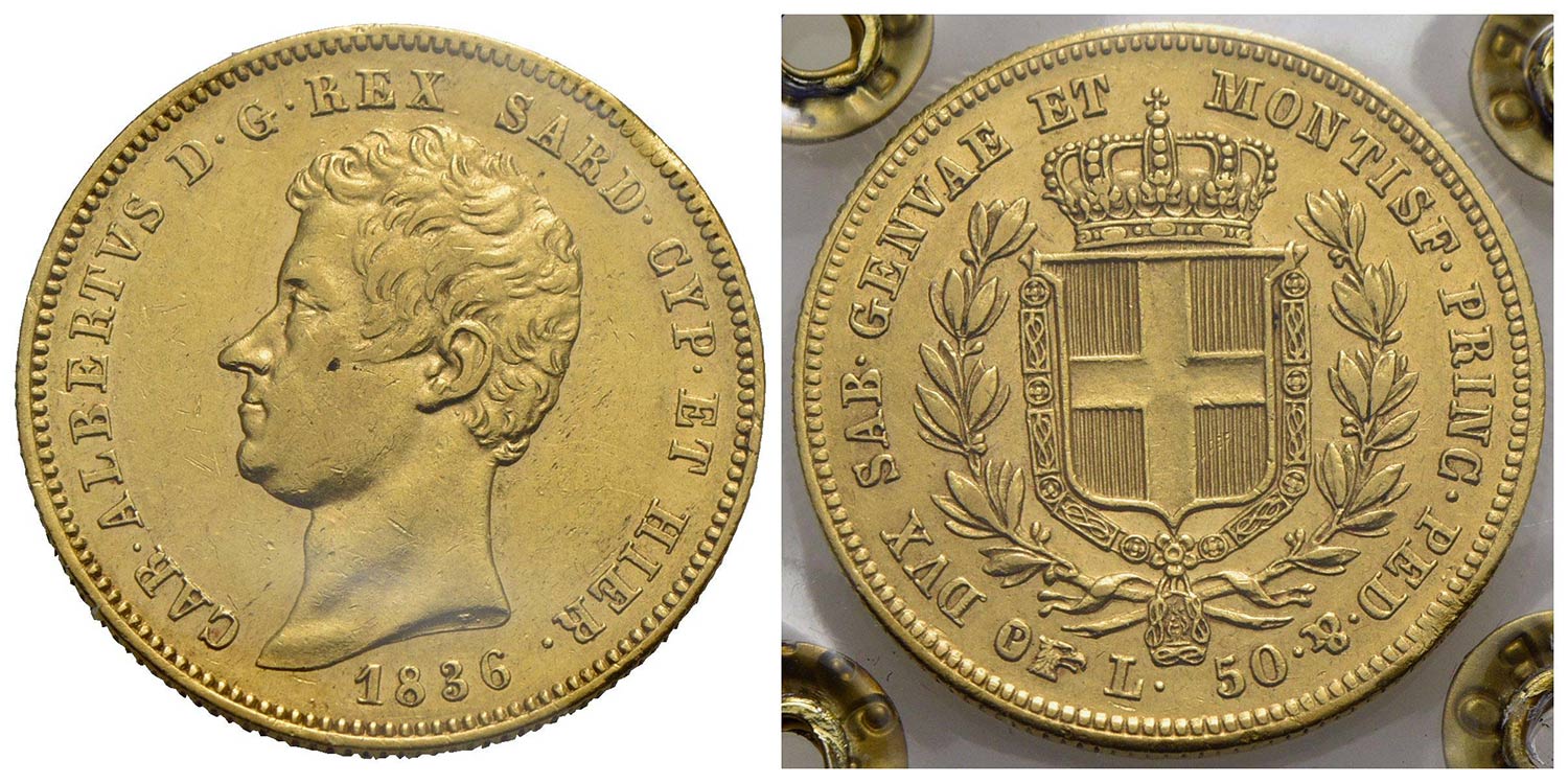 Carlo Alberto (1831-1849) - 50 Lire - 1836 T - AU RR Pag. 166; Mont. 33 Periziata Rocco di Torrepadu