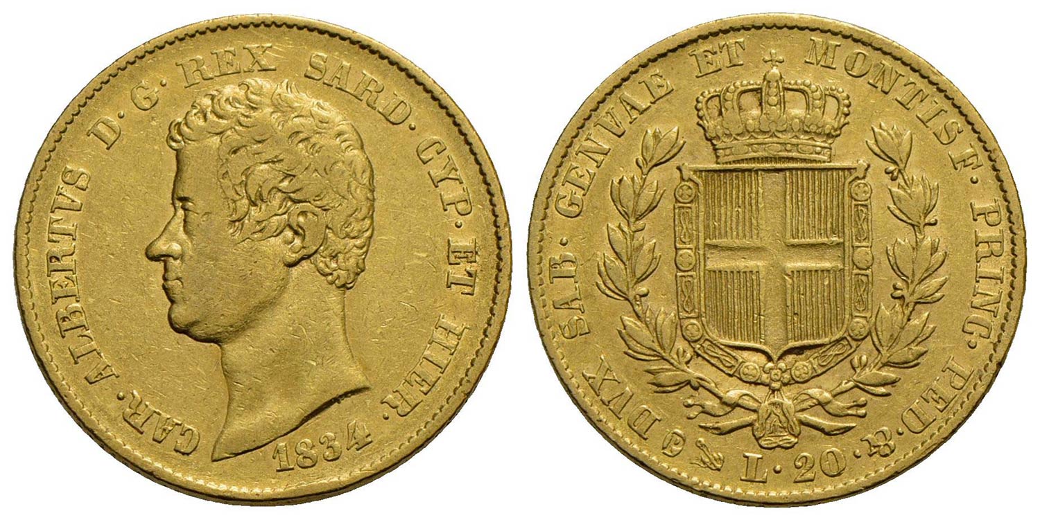 Carlo Alberto (1831-1849) - 20 Lire - 1834 G - AU Pag. 179; Mont. 50
