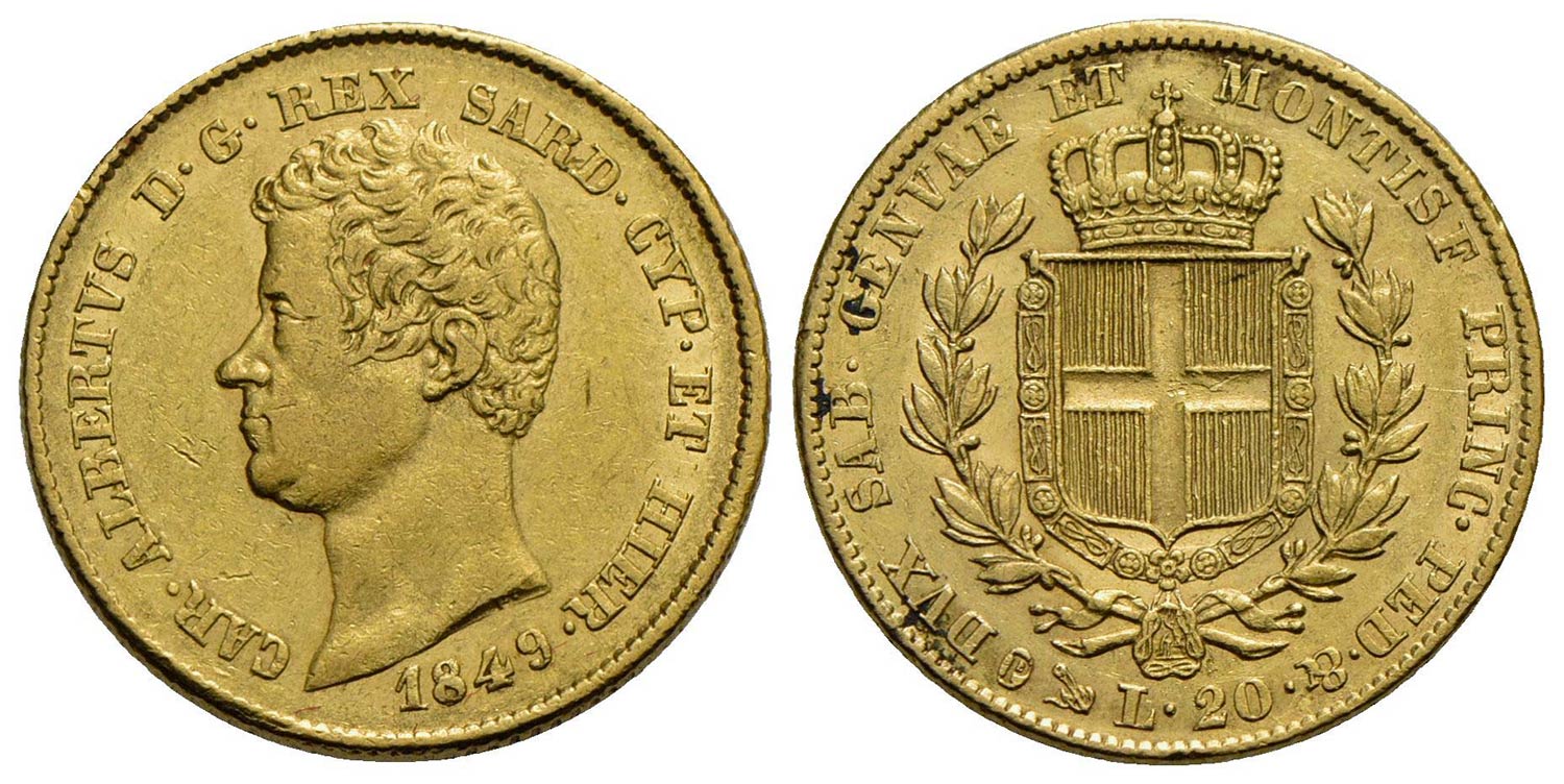 Carlo Alberto (1831-1849) - 20 Lire - 1849 G - AU Pag. 208; Mont. 81<br>BB+/SPL