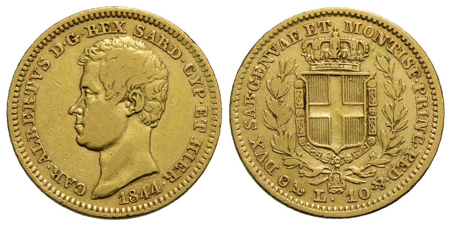 Carlo Alberto (1831-1849) - 10 Lire - 1844 G - AU RR Pag. 222; Mont. 95